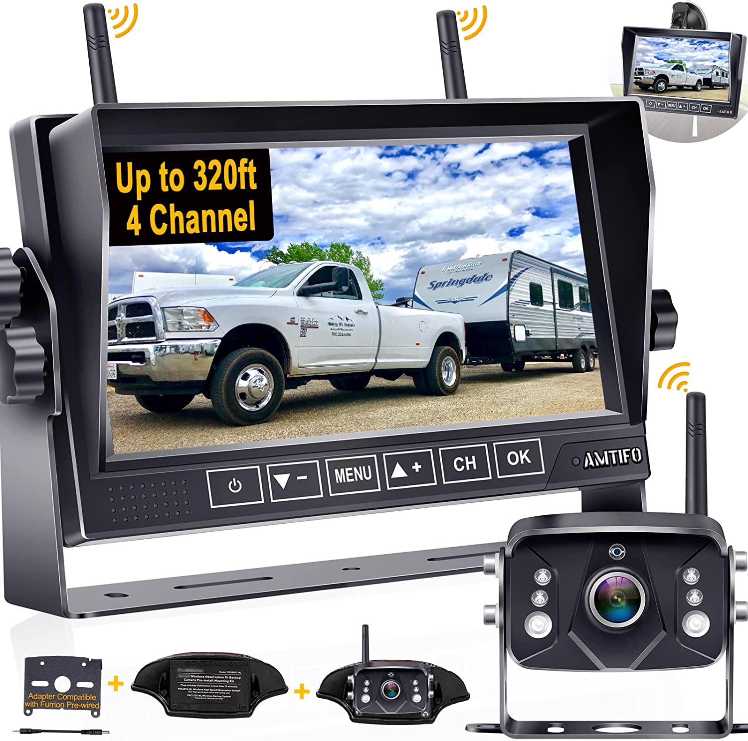 Rv Backup Camera Wireless Hd 1080p Trailer Bluetooth Rear View Cam System Touch Key 7 Dvr Monitor Split Screen 4 Channels For Truck Camper Adapter For Furrion Pre Wired Rvs Lwliuang A7
